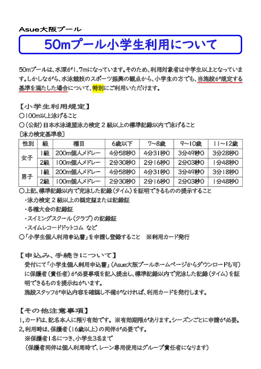 【50mプール小学生利用について】